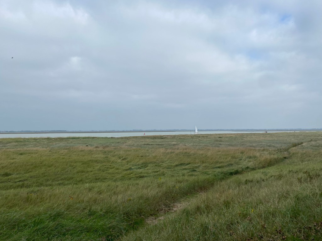 Puis nous allons à l’hôtel et le cliché rend compte de la vue de notre fenêtre – hypra cool vous en conviendrez. Les nuages offrent une météo délicieuse. Un heure plus part nous voici pédalant pour effectuer le tour de la baie et c’est un moment enchanteur – le vent, la fraîcheur, l’intelligence de la voie réservée aux vélos, la vue de quelques oiseaux en attendant demain, le thé sur les hauteurs du Crotoy. Cela nous vide la tête.