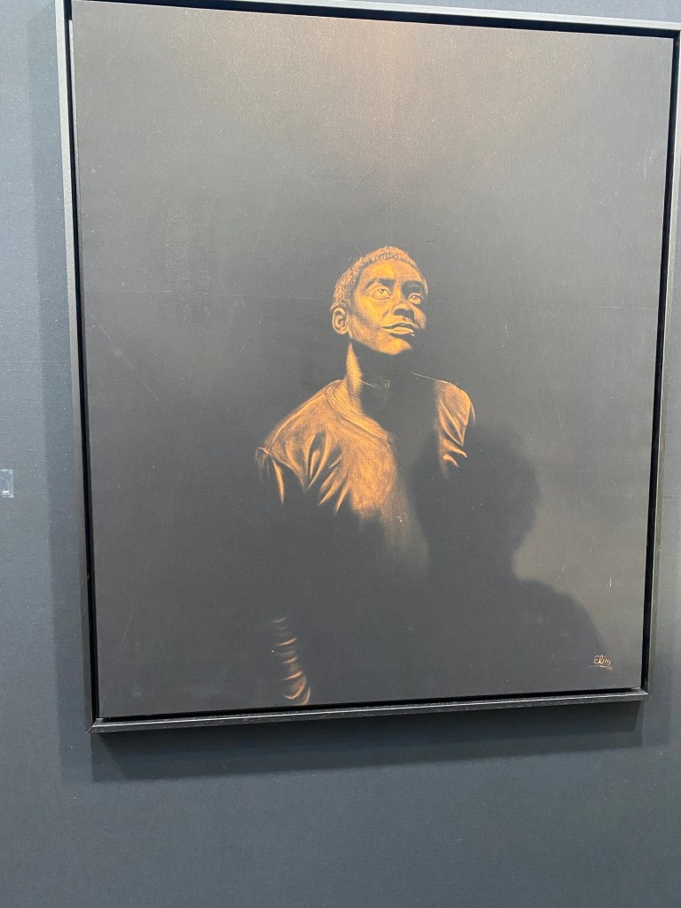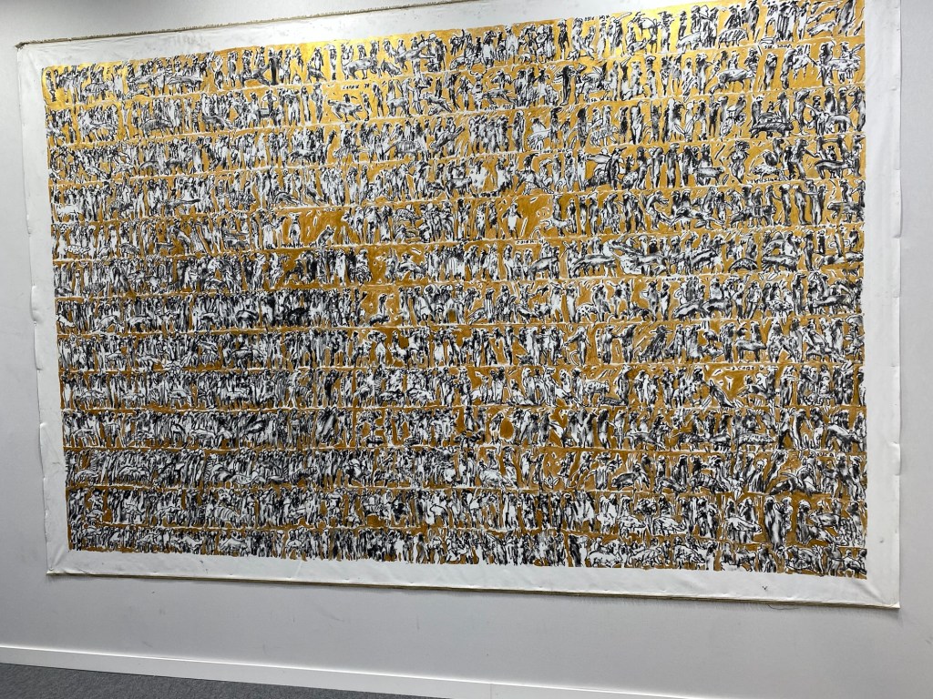 Beaucoup d’oeuvres présentées dans AKAA sont saisissantes dont cette exposition monumentale qui marque l’entrée ou cette peinture réalisée à l’eau de javel.