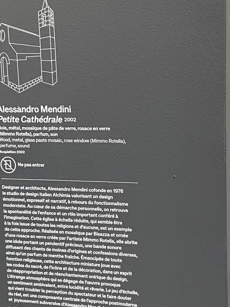 Mais passons aux œuvres si vous le voulez bien. Nous sommes accueillis par une Petite cathédrale de Allesandro Mendini dont le mystère éclate sereinement.