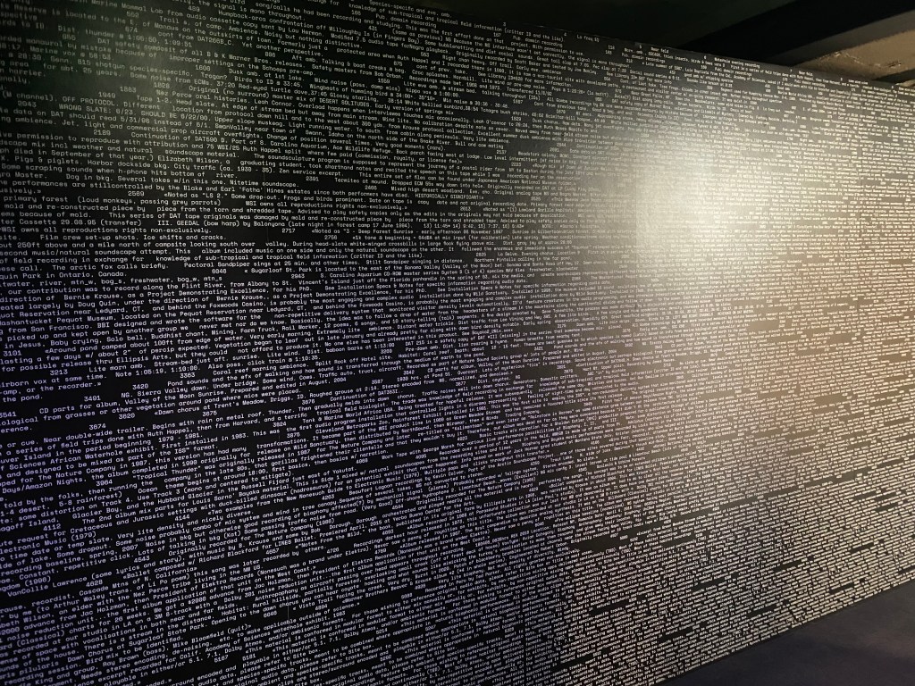 D’autres œuvres sont également présentées et nous nous disons que à ce stade nous ne savons pas où donner de la tête car la richesse est prégnante. En passant dans la suite de l’espace nous voyons ce qui nous attend lorsque nous serons un étage plus bas et l’oeuvre est celle de archives archéologiques – un rétrofuturisme déliquescent et réjouissant.