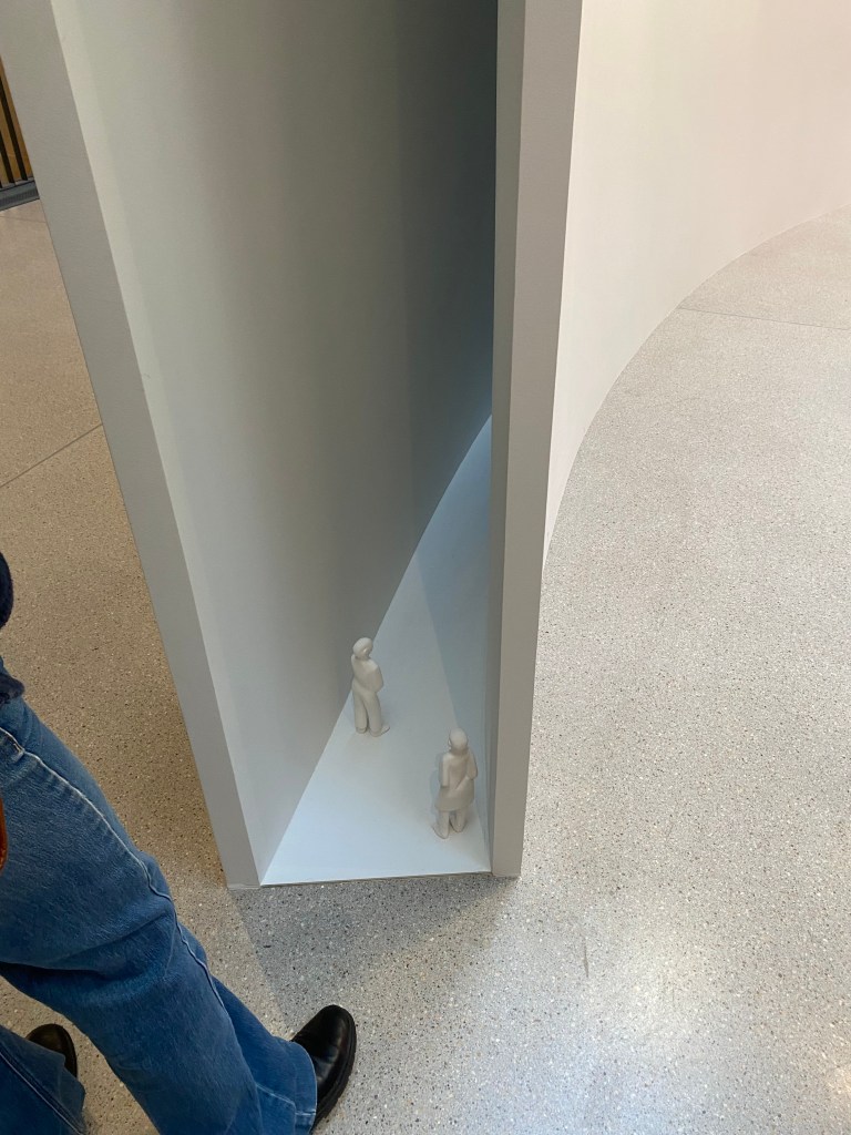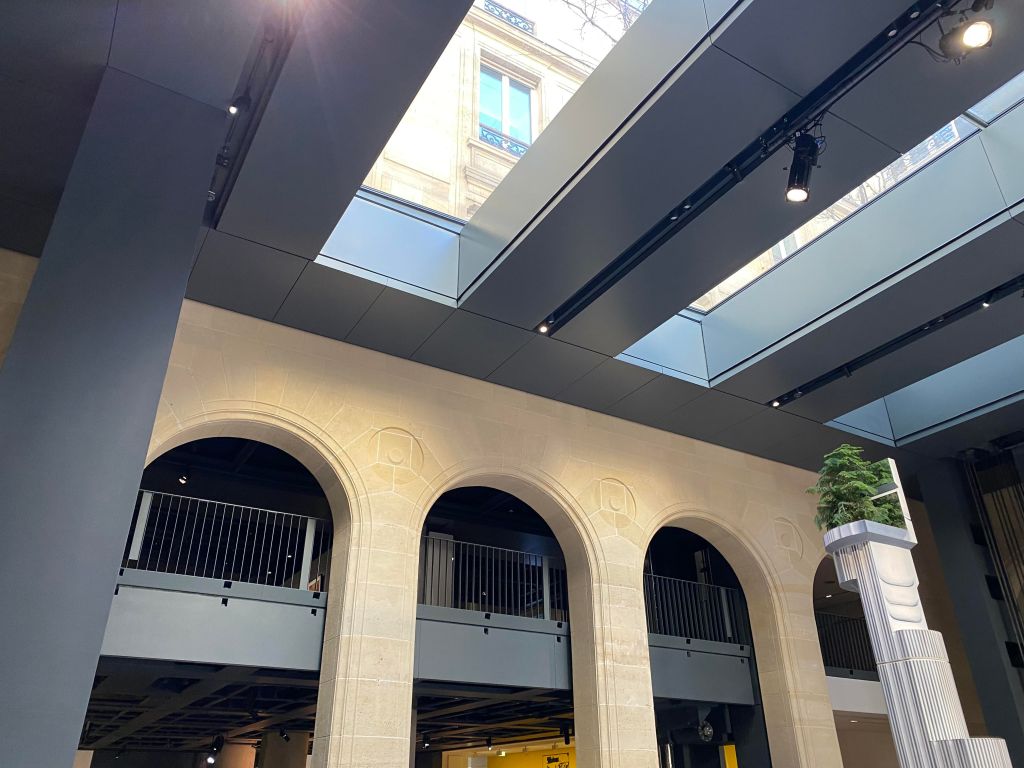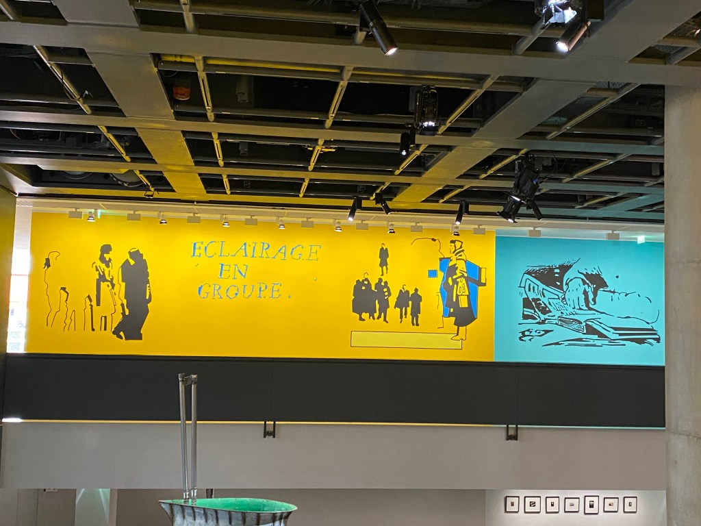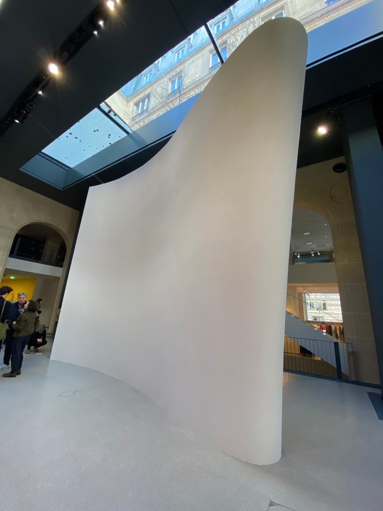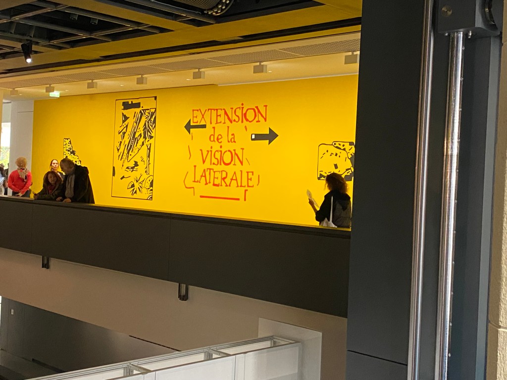 Nous sommes sur place en fin de matinée car j’ai réservé la veille et c’était le premier créneau disponible et dès l’entrée on reste « baba » devant tant d’audace dans ce lieu. Je connaissais très bien l’ancienne localisation (boulevard Raspail) qui déjà tranchait par son audace mais là on a droit à une leçon de mise en scène de l’art contemporain : intelligence, souplesse sont les mots qui me viennent à l’esprit.