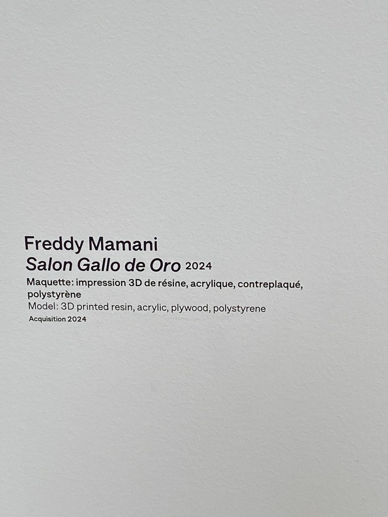 Le travail de Freddy Mamani (« Salon Gallo de Oro ») est spectaculaire par ses dimensions, ses couleurs ( « AbFab » est tout simplement éblouie), précis dans les détails et les perspectives. Une douce folie.