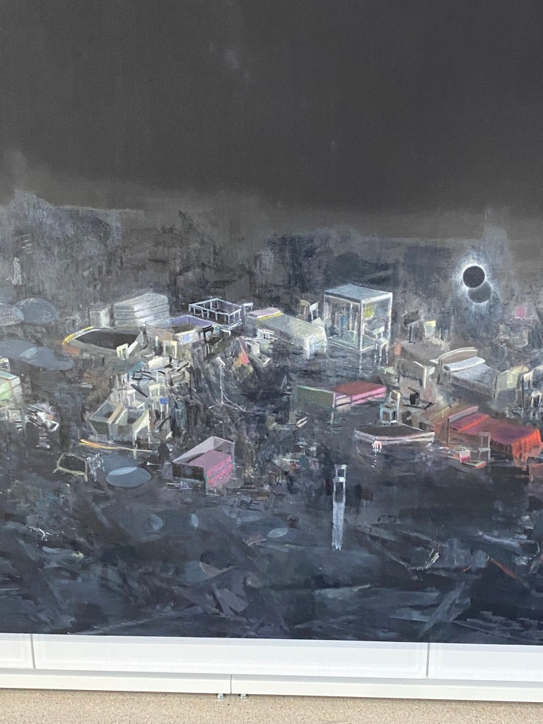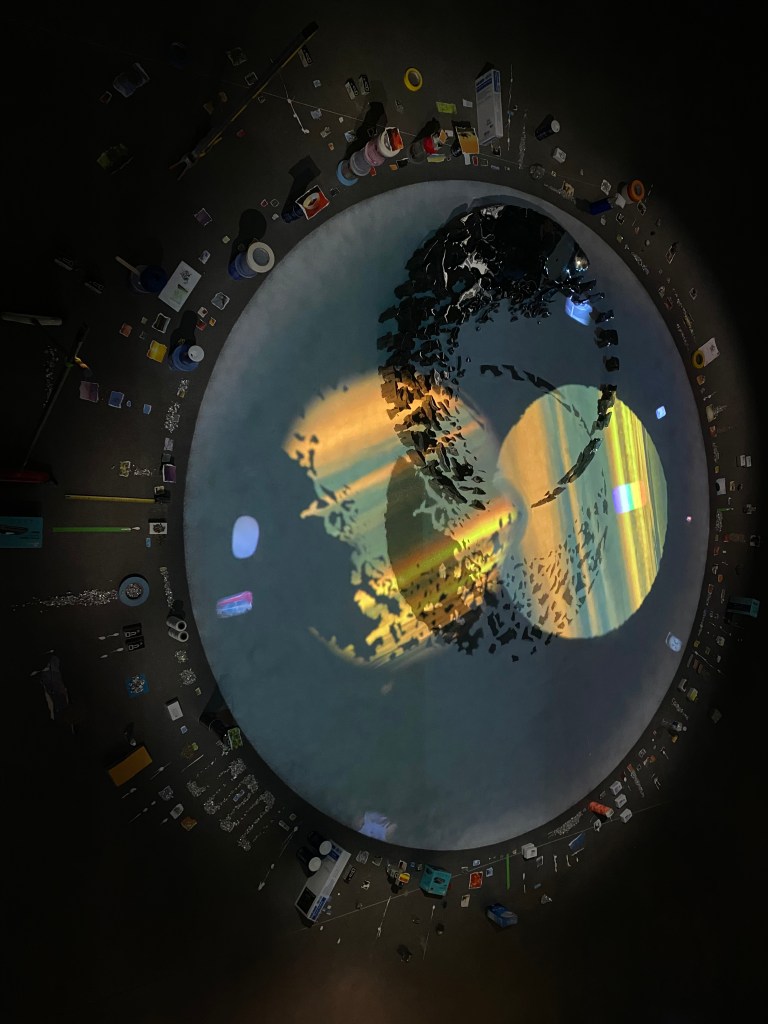 La plus belle installation est proposée par Sarah Sze avec « Tracing Fallen Sky » où l’on atteint au sublime.