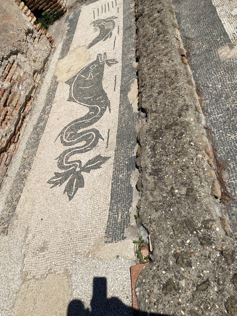 La déambulation enchanteresse continue entre théâtre, villa somptueuse, latrines, vestiges de la via Appia, mosaïques, fresques murales, greniers. Ce ne sont que des ruines me direz-vous. Je ne vous pas le contraire mais elles semblent encore pleines de la vie qu’elles refermaient et c’est au-delà de l’envoûtement.