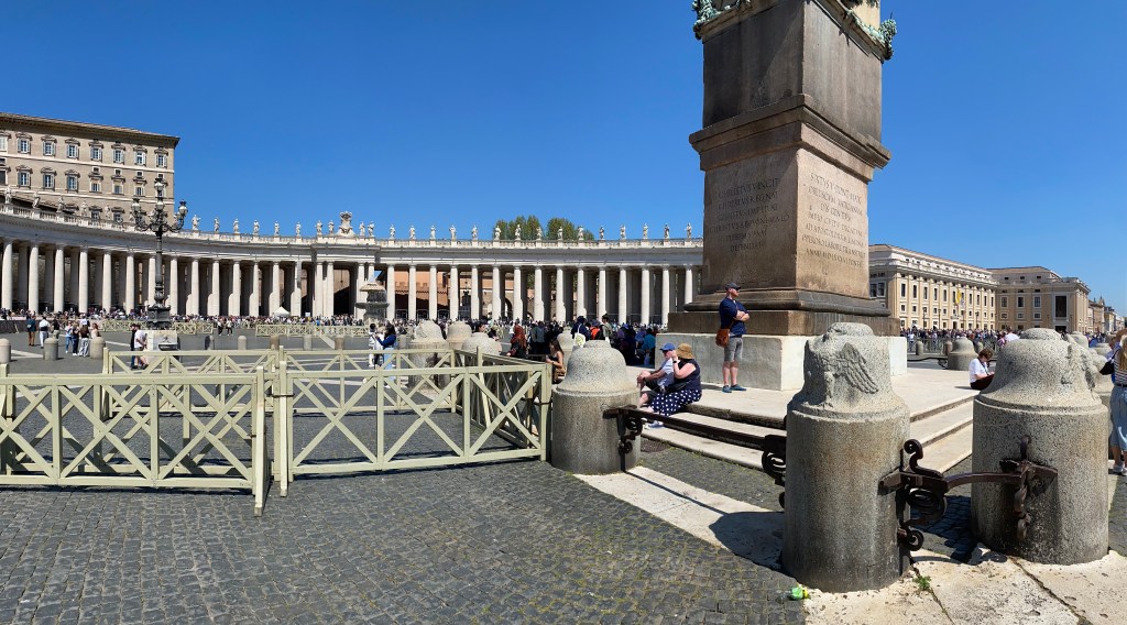 Nous effectuons notre première visite à Saint Pierre de Rome, de l’extérieur certes mais nous déclarons forfait devant les 5 heures annoncées de file d’attente – une autre fois, certainement. C’est pourtant impressionnant et inspirant.